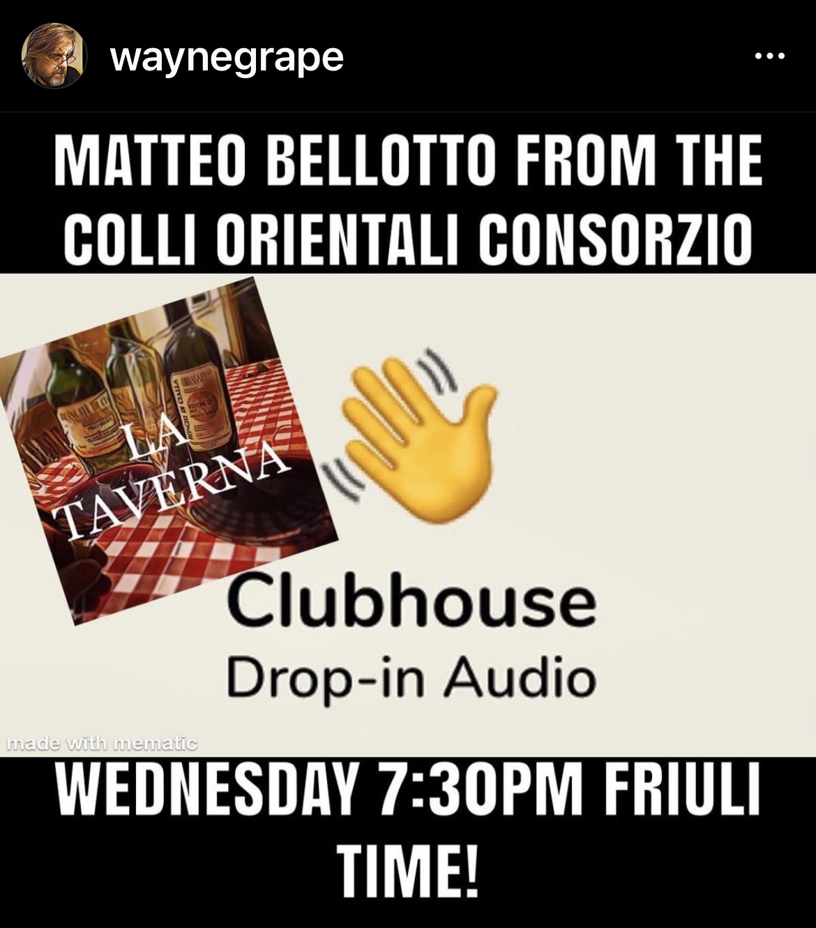 @belteos and @waynegrape were on @clubhouse talking about Friuli Wines and his Tasting Academy in Corno di Rosazzo @storiedivinofriuli